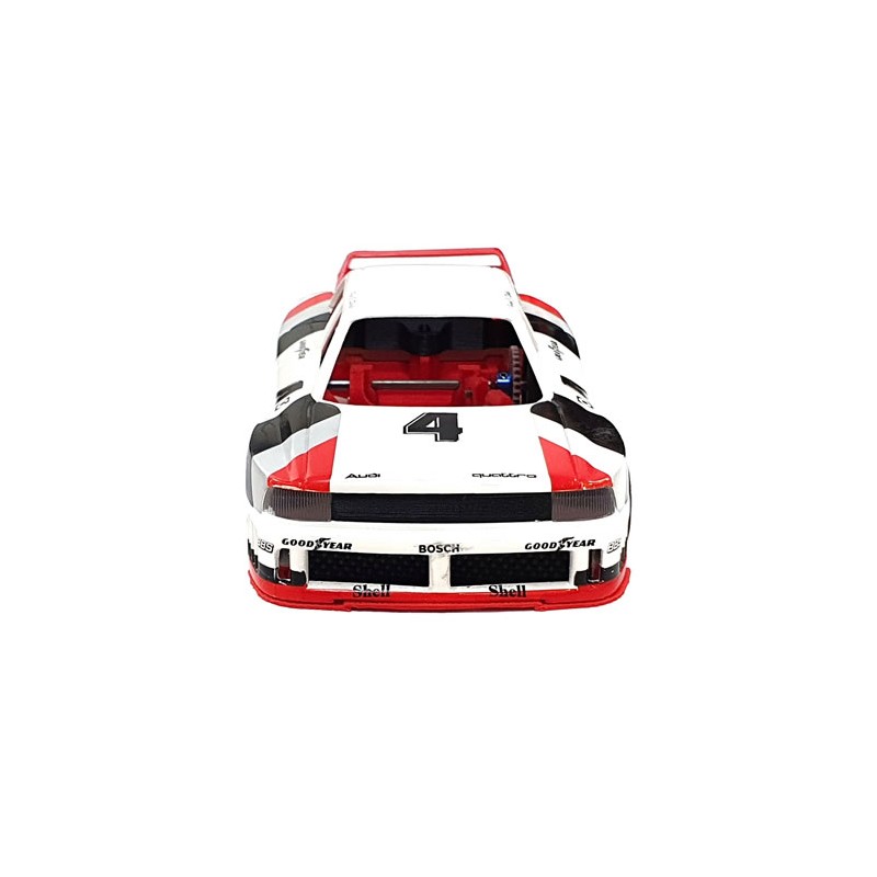Chasis diseñado para poder se utilizar con el interior de serie eliminando los cuatro pilares que van desde este hacia los ejes y también se puede utilizar colocando interior de lexan e instalando las dos parrillas negras , delantera y trasera, que vienen con el chasis, que es donde se colocan las luces delanteras y traseras y el tornillo trasero de sujeción del chasis.