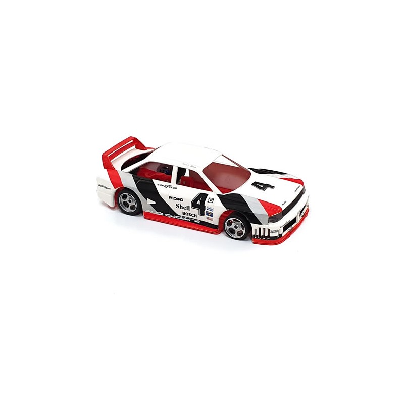 Chasis diseñado para poder se utilizar con el interior de serie eliminando los cuatro pilares que van desde este hacia los ejes y también se puede utilizar colocando interior de lexan e instalando las dos parrillas negras , delantera y trasera, que vienen con el chasis, que es donde se colocan las luces delanteras y traseras y el tornillo trasero de sujeción del chasis.