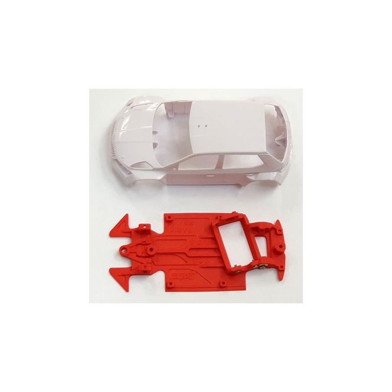 En este coche al ser tracción total el chasis dispone del sistema AFR que mantiene el eje delantero siempre pegado a la pista y traccionando ayudando a evitar en lo posible los derrapajes del eje trasero