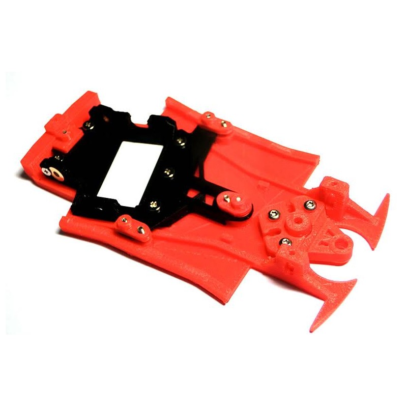 Chasis 205 T16 rally PRO, se trata de un chasis con soporte motor propio de la marca Mustang, pensado para su utilizacion en anglewinder, viene en kit premontado, con soporte motor, tornillos y cojinetes incluidos. Para este chasis se aconseja llantas de 15.5 a 16mm y guia tipo italian cars con muelle
