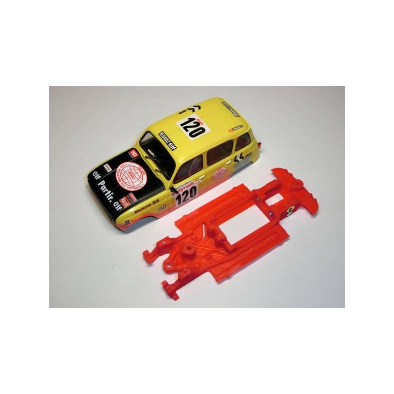 Este chasis esta diseñado para llantas de 15 a 15.5mm y para neumáticos traseros Low Sprint ref. M-N003, marca Mustang Slot, de esta manera conseguiremos que el coche este lo mas bajo posible.