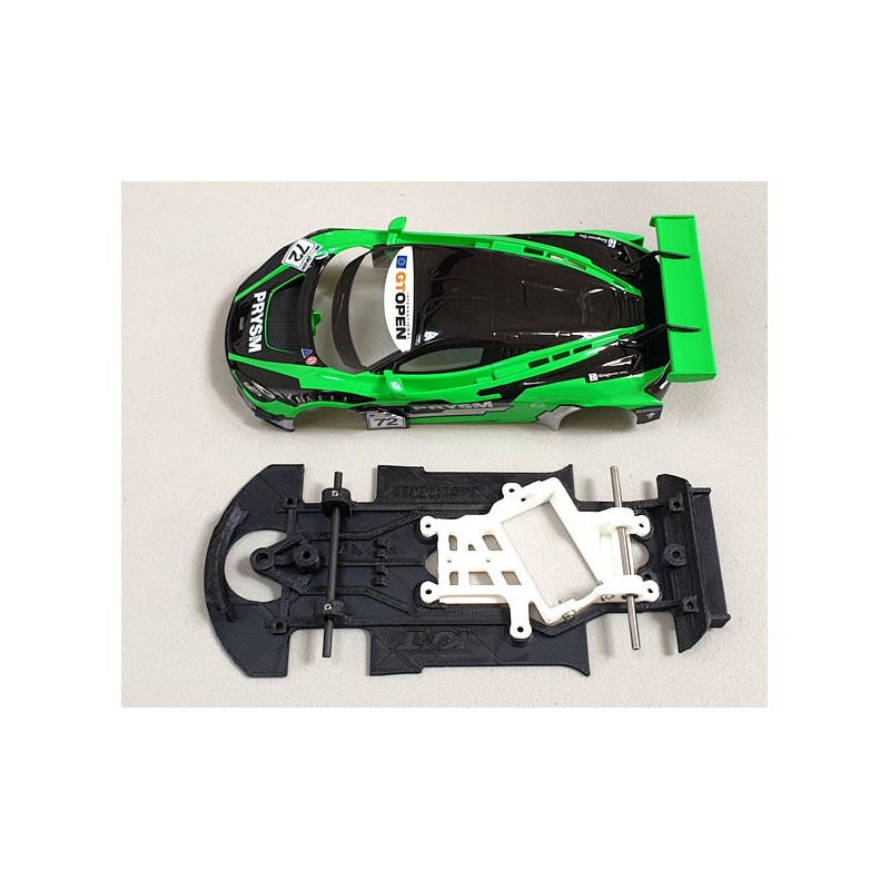Con soporte motor Kat Racing Offset 0.5 AW con material de primeras marcas como: rodamientos incorporados de Tectime, eje trasero hueco de Sloting Plus de 55mm y eje delantero de carbono de Tectime además de tornillería para motor y regulación del eje delantero.