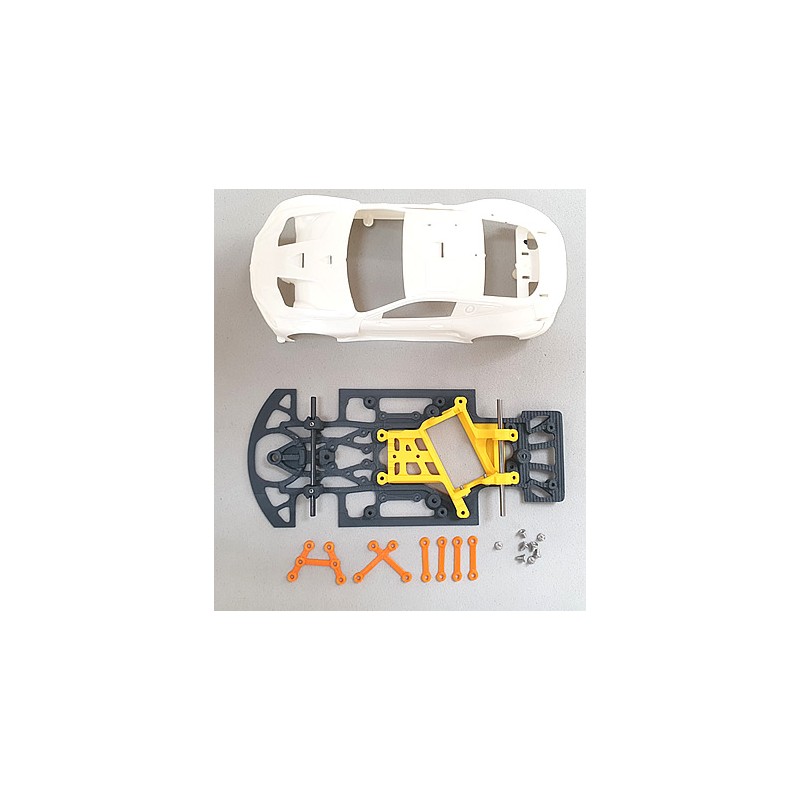El tamaño de llanta aconsejable para pista Ninco es de 16.9 / 17.2mm y para pista Scaleauto 16.2 / 16.5mm. Este Kit está compuesto de materiales de primera calidad como son los rodamientos Tectime, eje trasero hueco Sloting Plus, eje delantero de carbono Tectime y tornillería de regulación de eje y sujeción del motor.