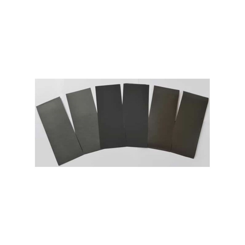 Perfecto para utilizar con agua y presentado en un blíster donde hay 6 hojas, 1.000 x 2, 1.500 x 2 y 2.000 x 2, para conseguir un gran acabado superficial de la pieza y dejarla preparada para su posterior pintado.