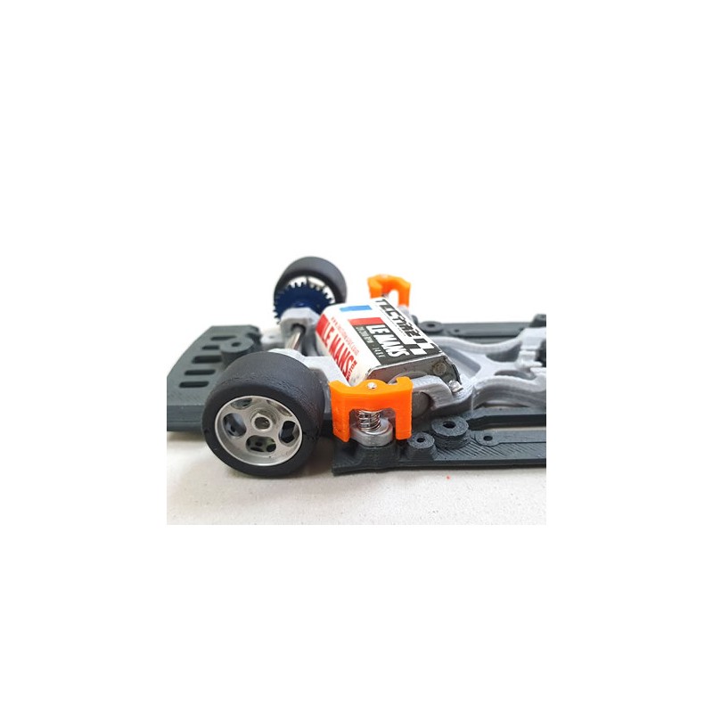 Estos soportes independientes están diseñados para poder regular las suspensiones laterales sin tener que quitar la carrocería de esta manera la regulación es mucho más cómoda y efectiva.